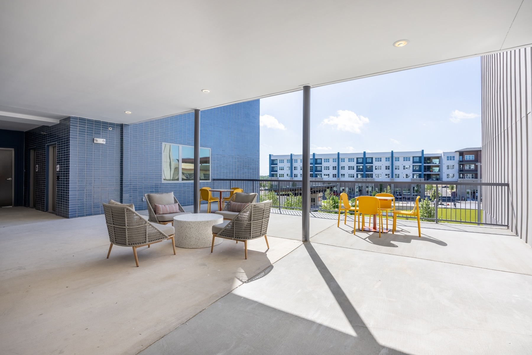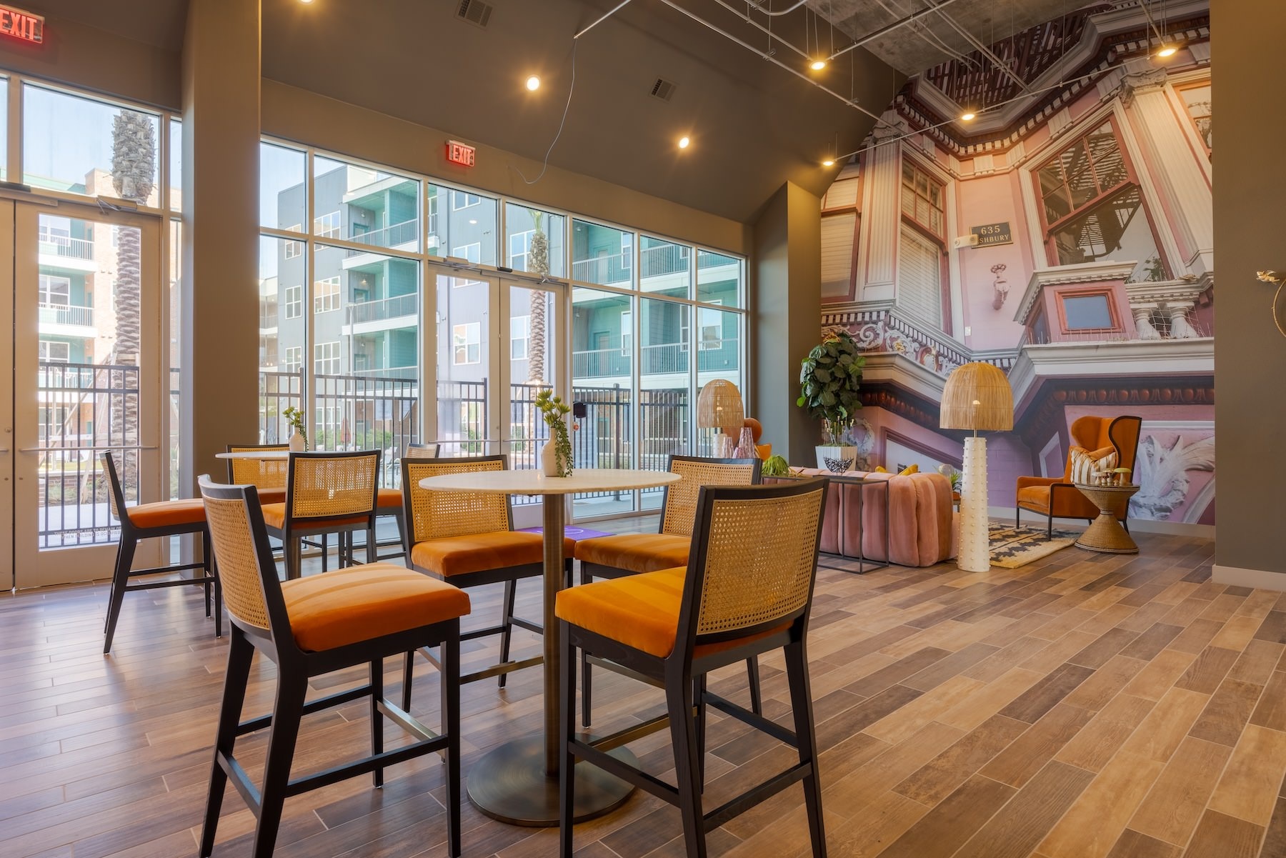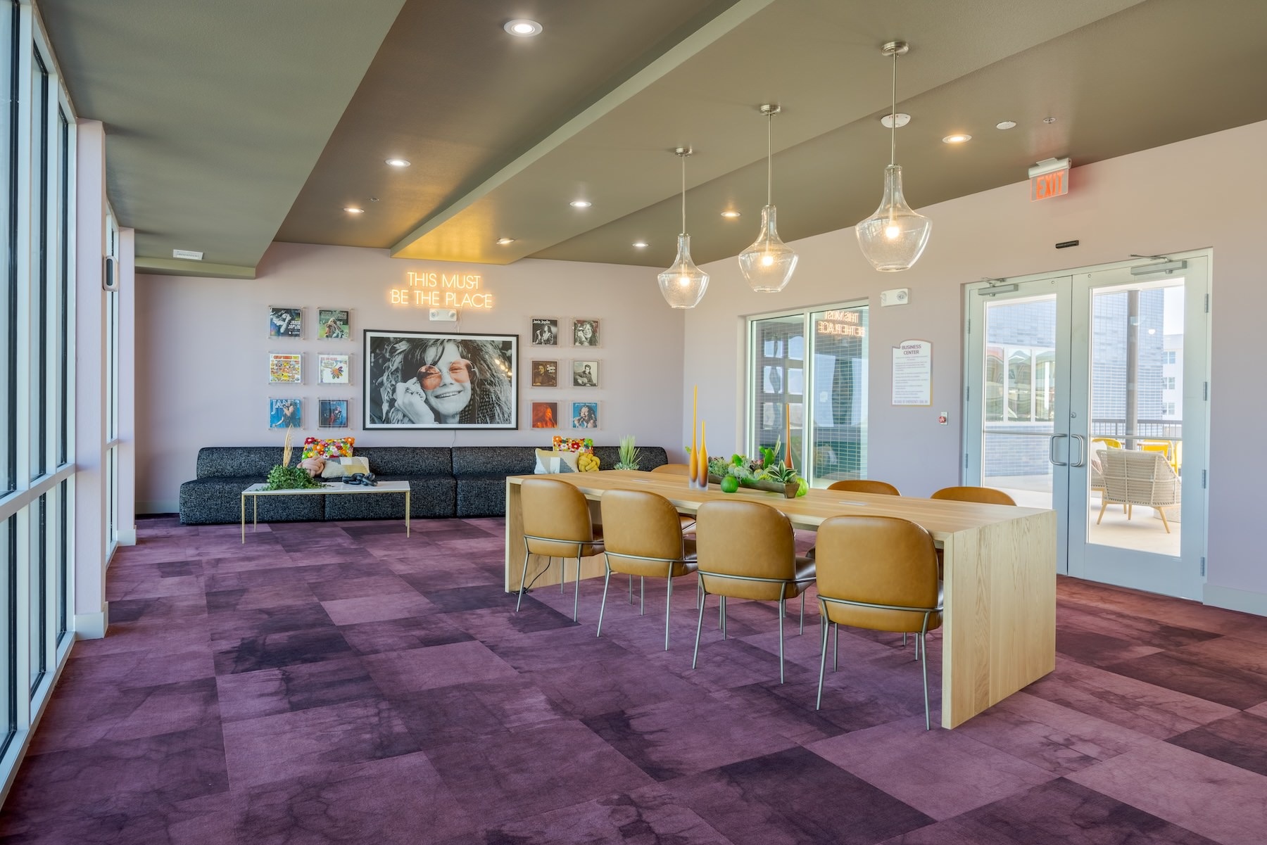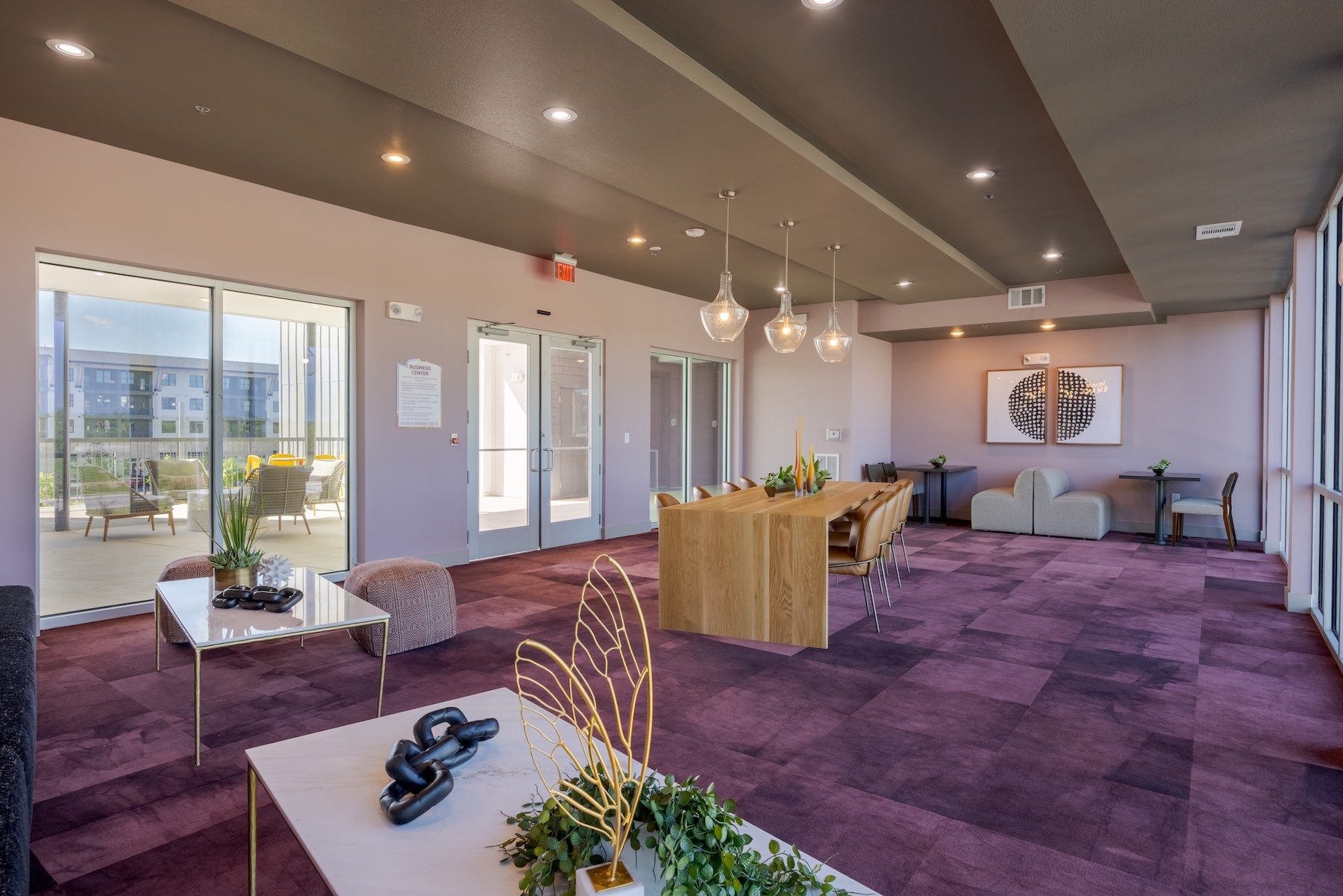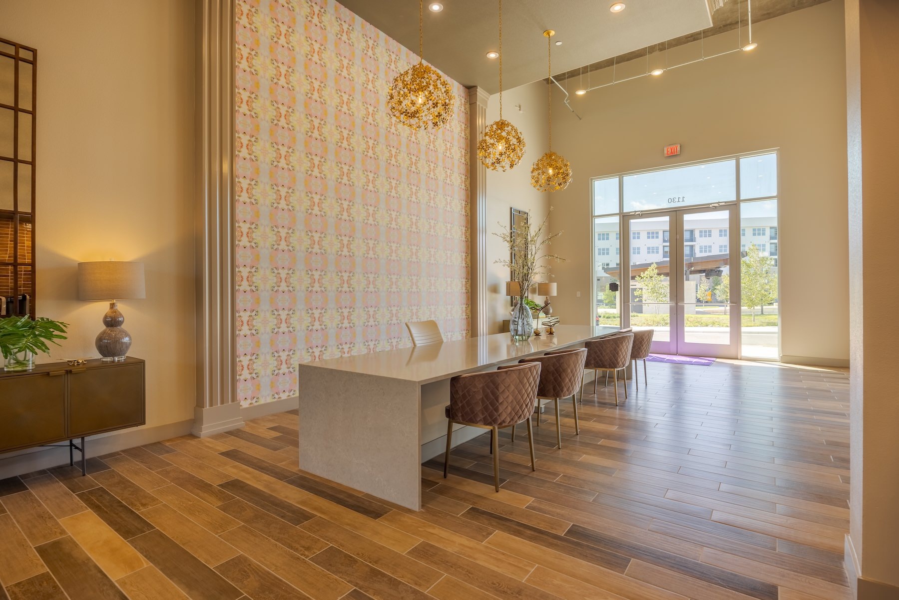 Co-working lounge and dining area at The Janis modern apartments in Austin, TX