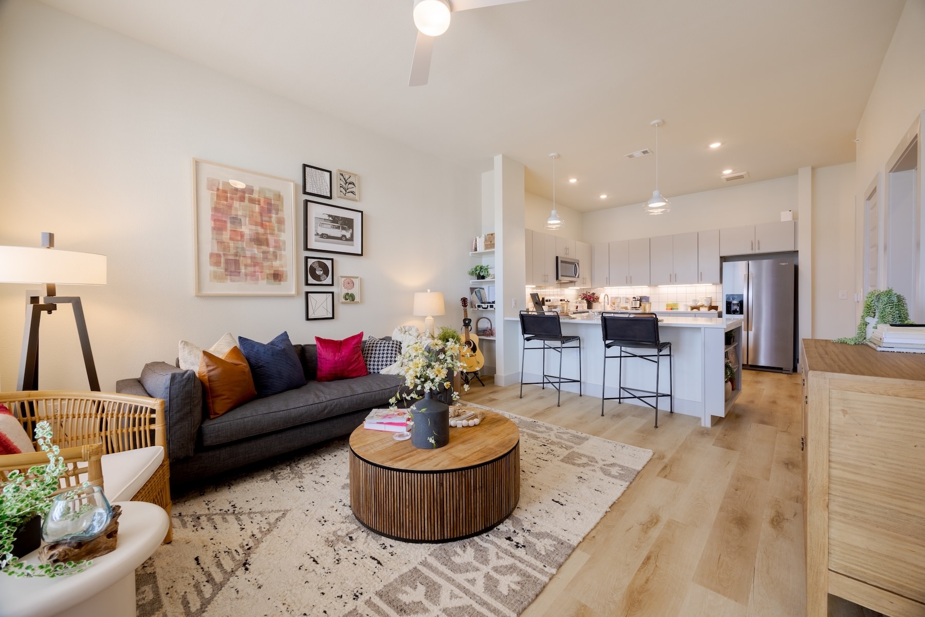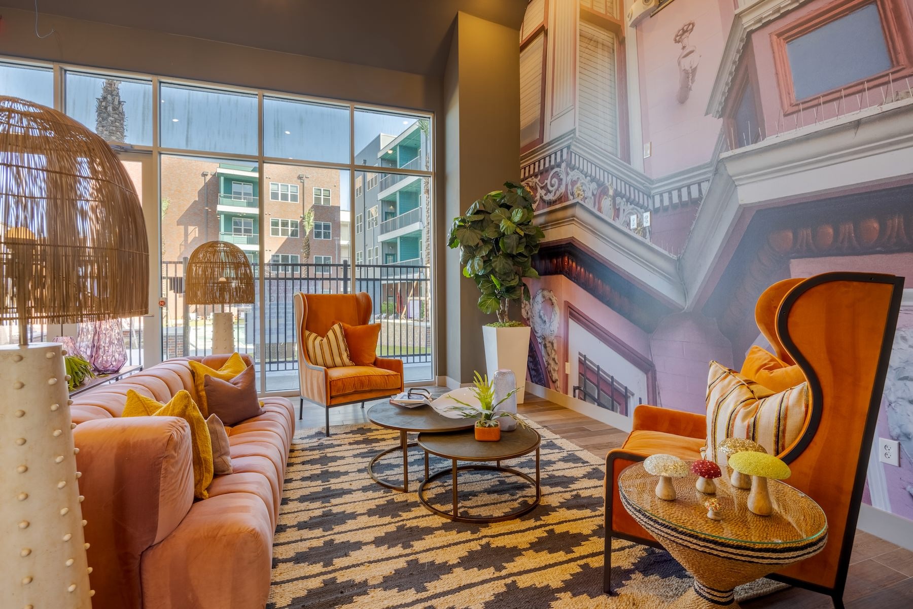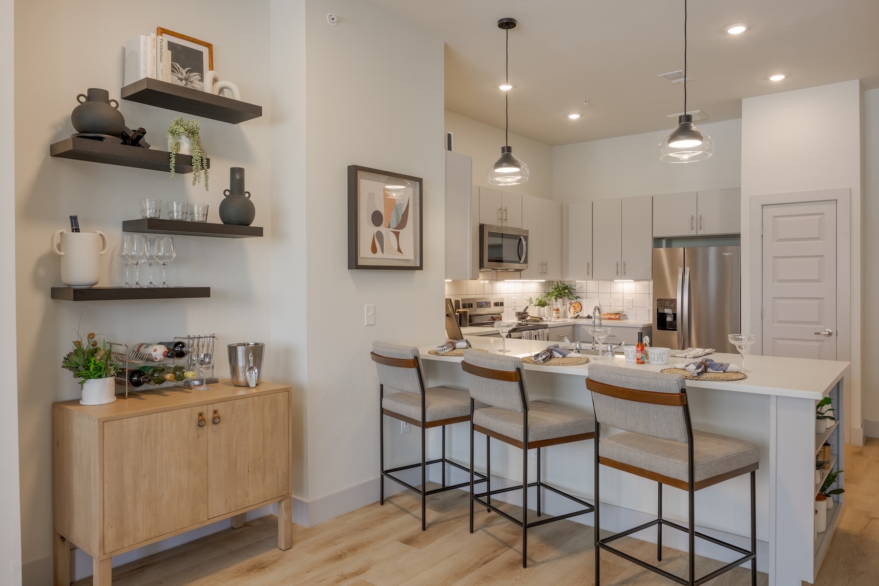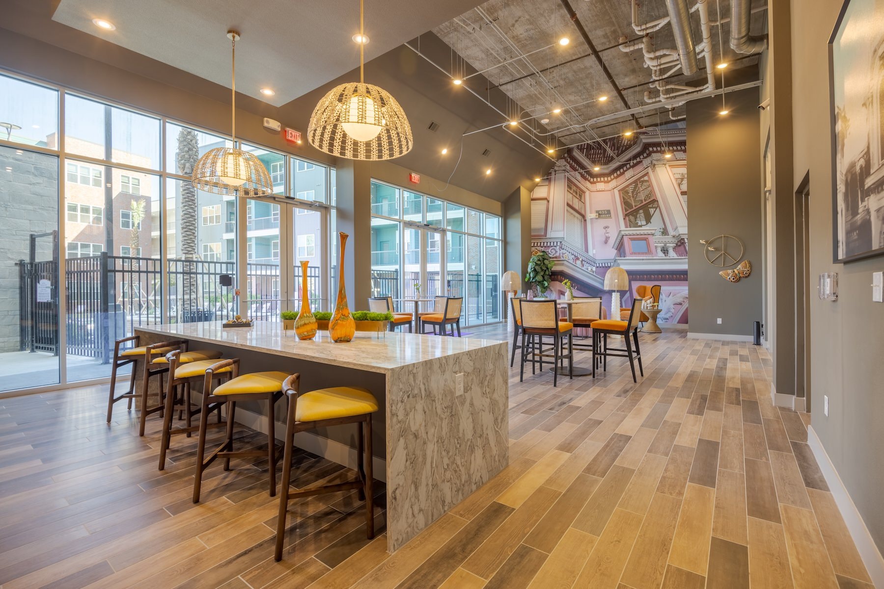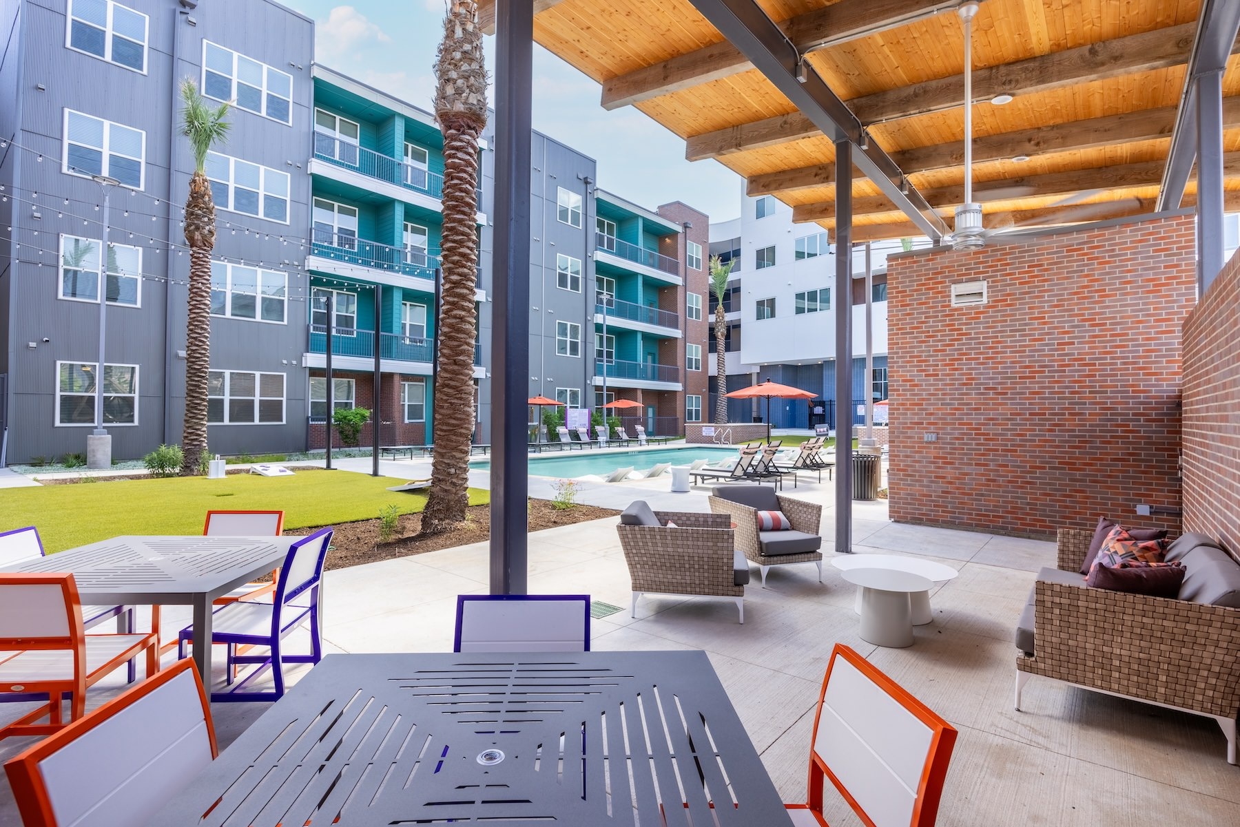 Co-working lounge and dining area at The Janis modern apartments in Austin, TX