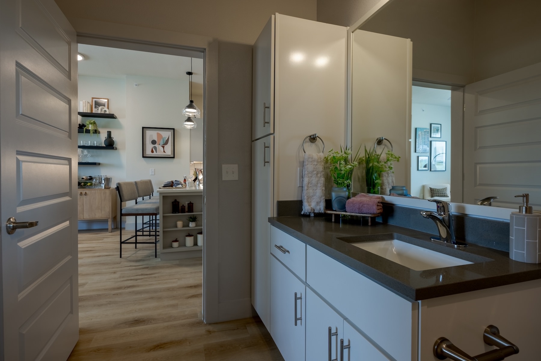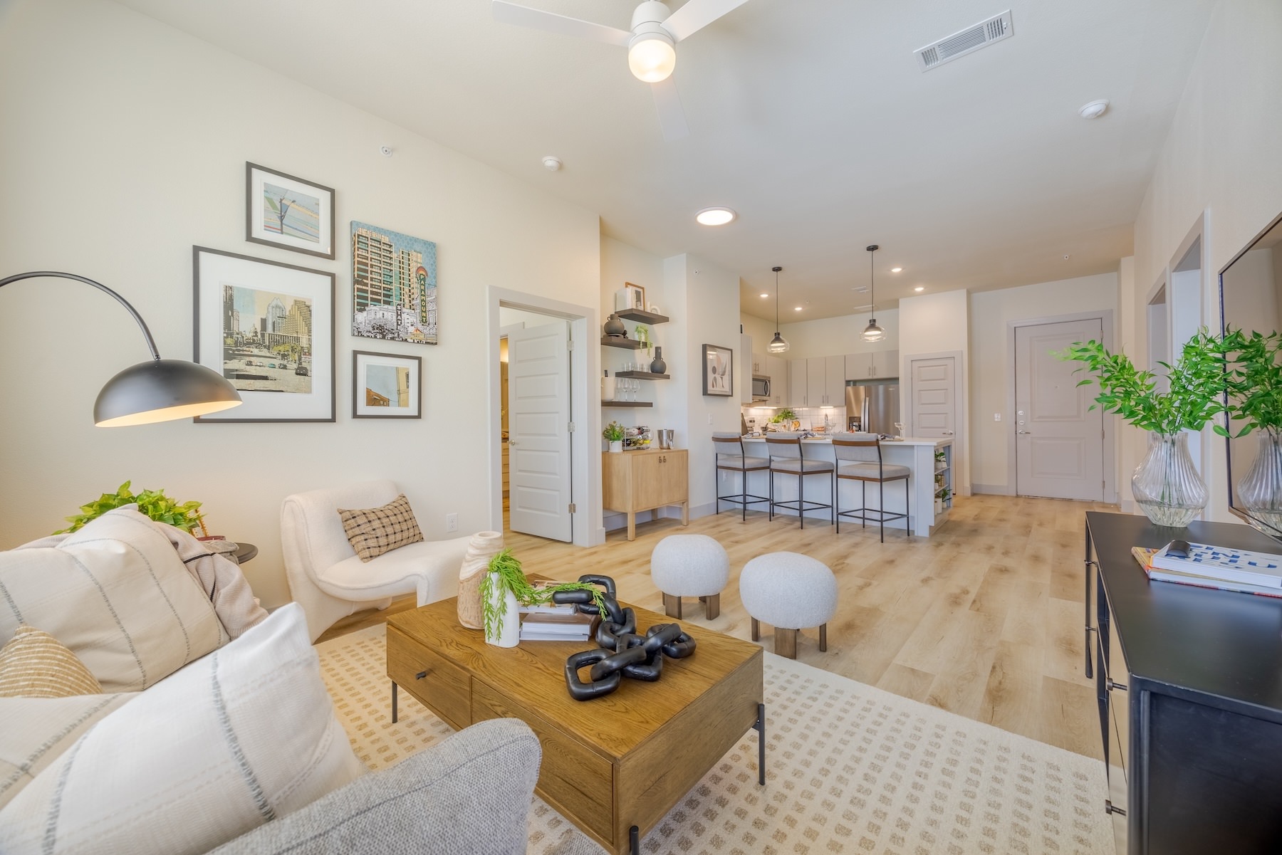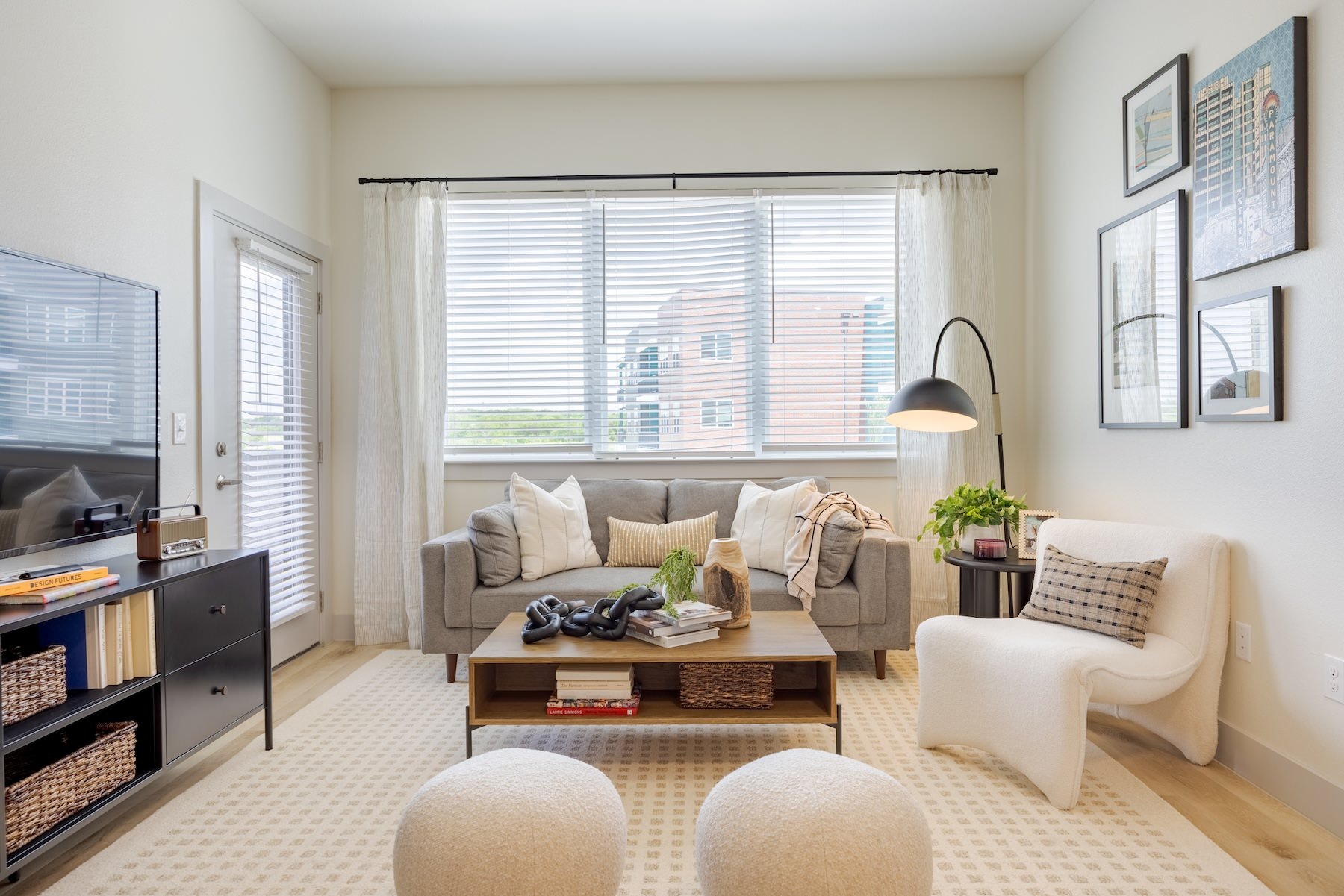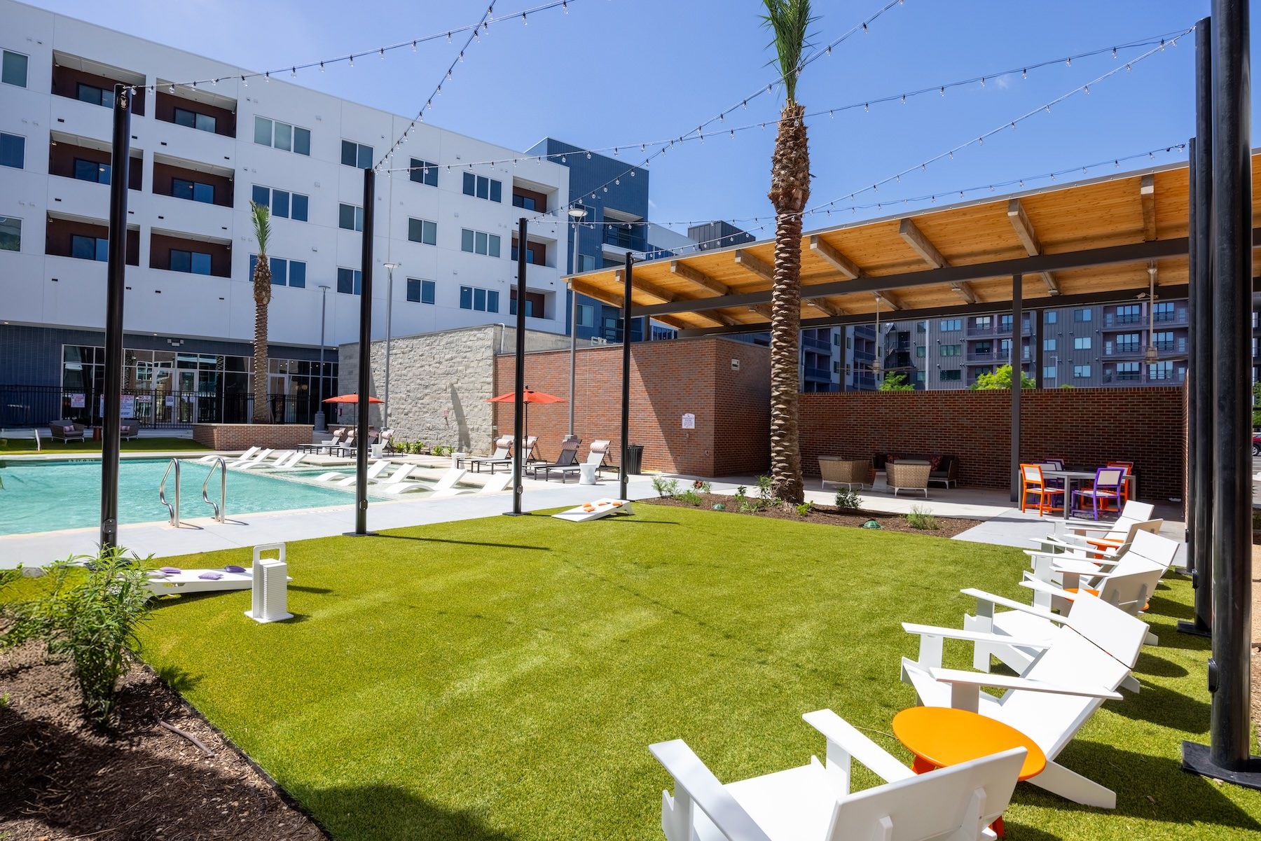Co-working lounge and dining area at The Janis modern apartments in Austin, TX