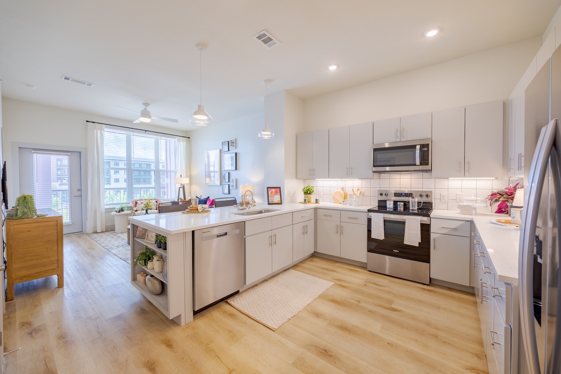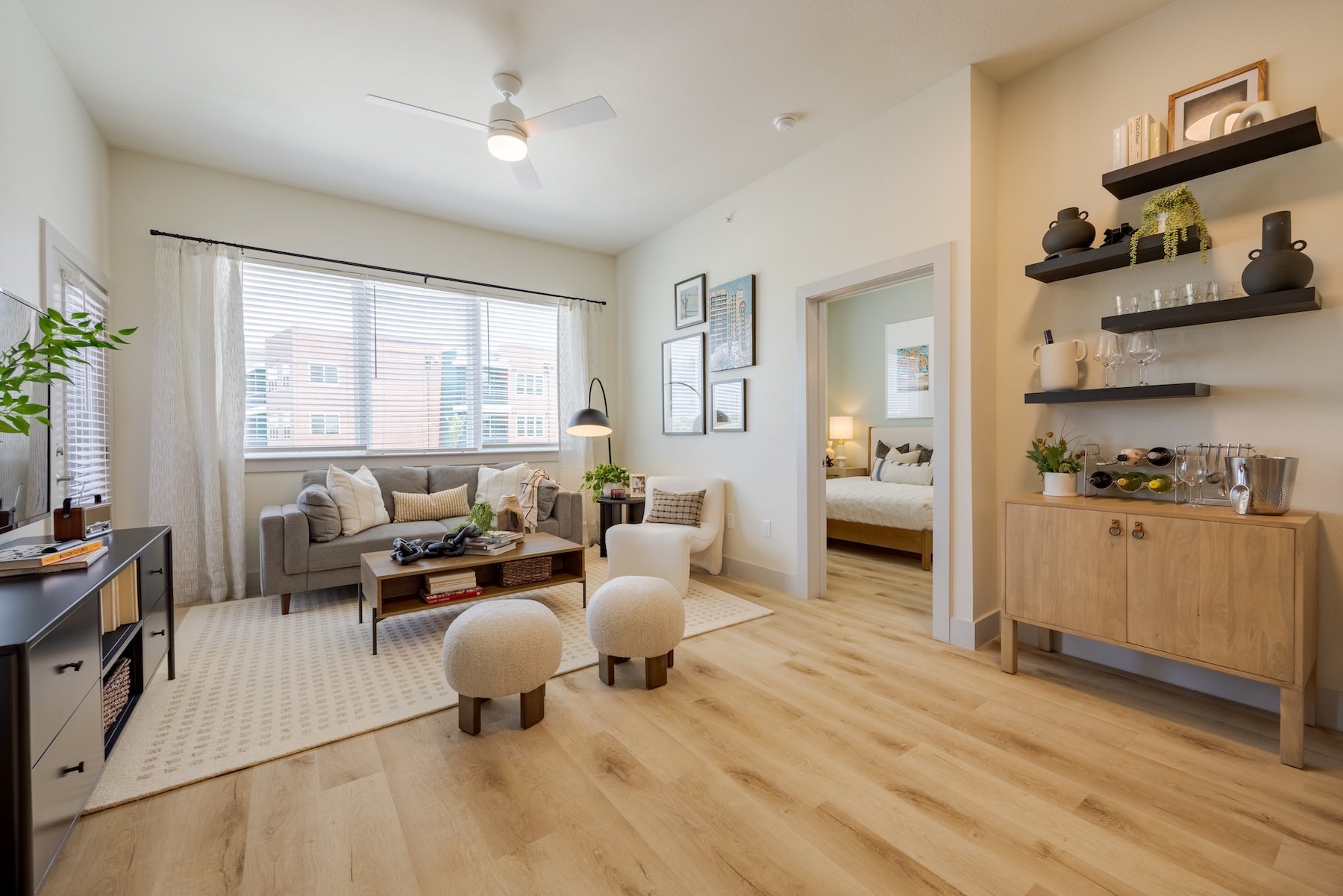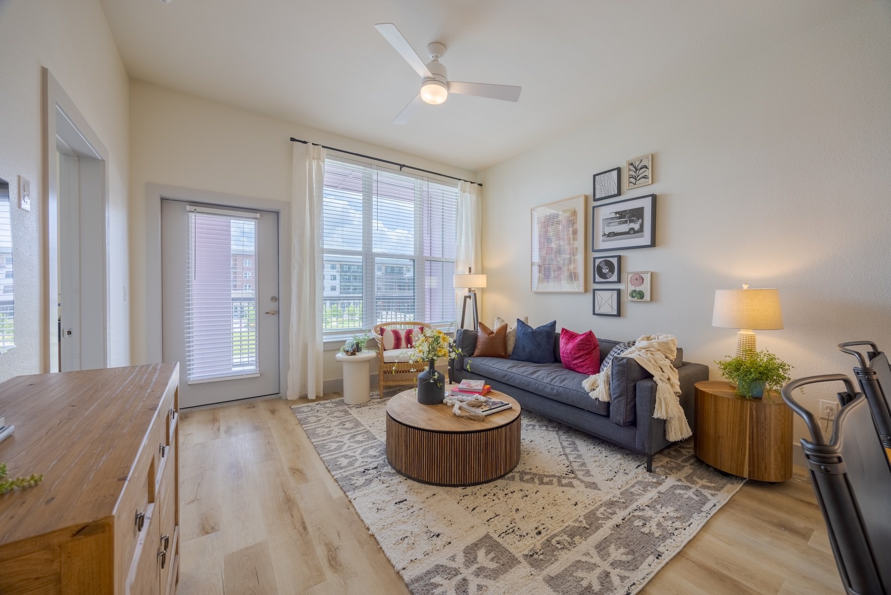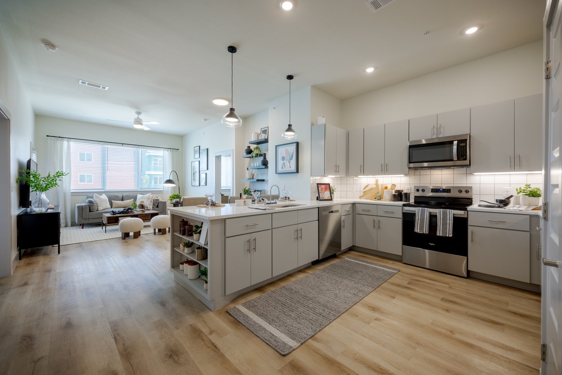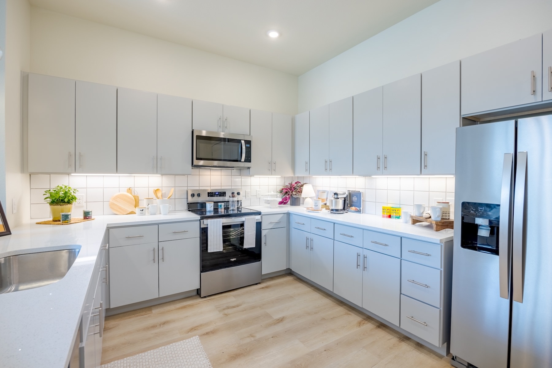Co-working lounge and dining area at The Janis modern apartments in Austin, TX