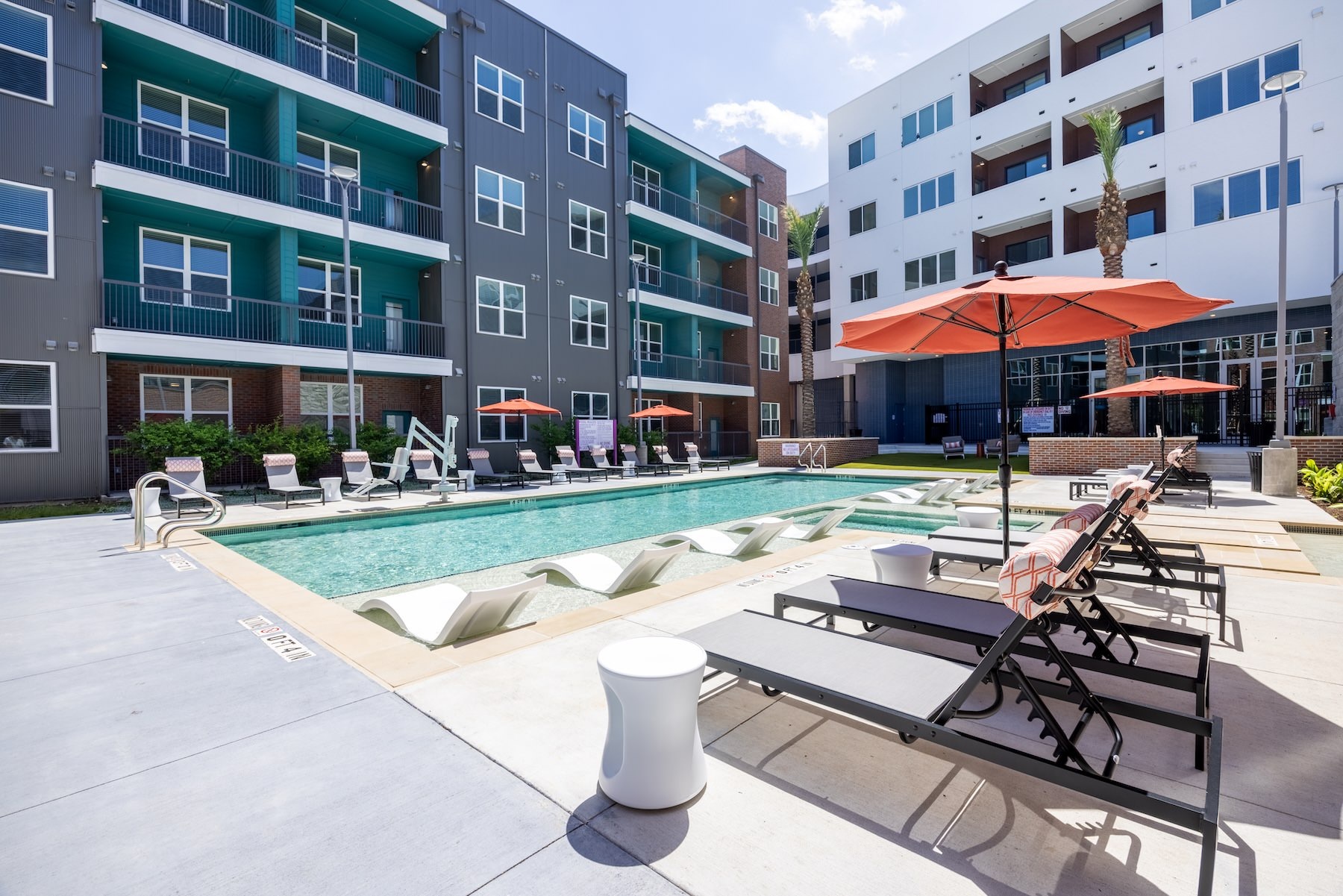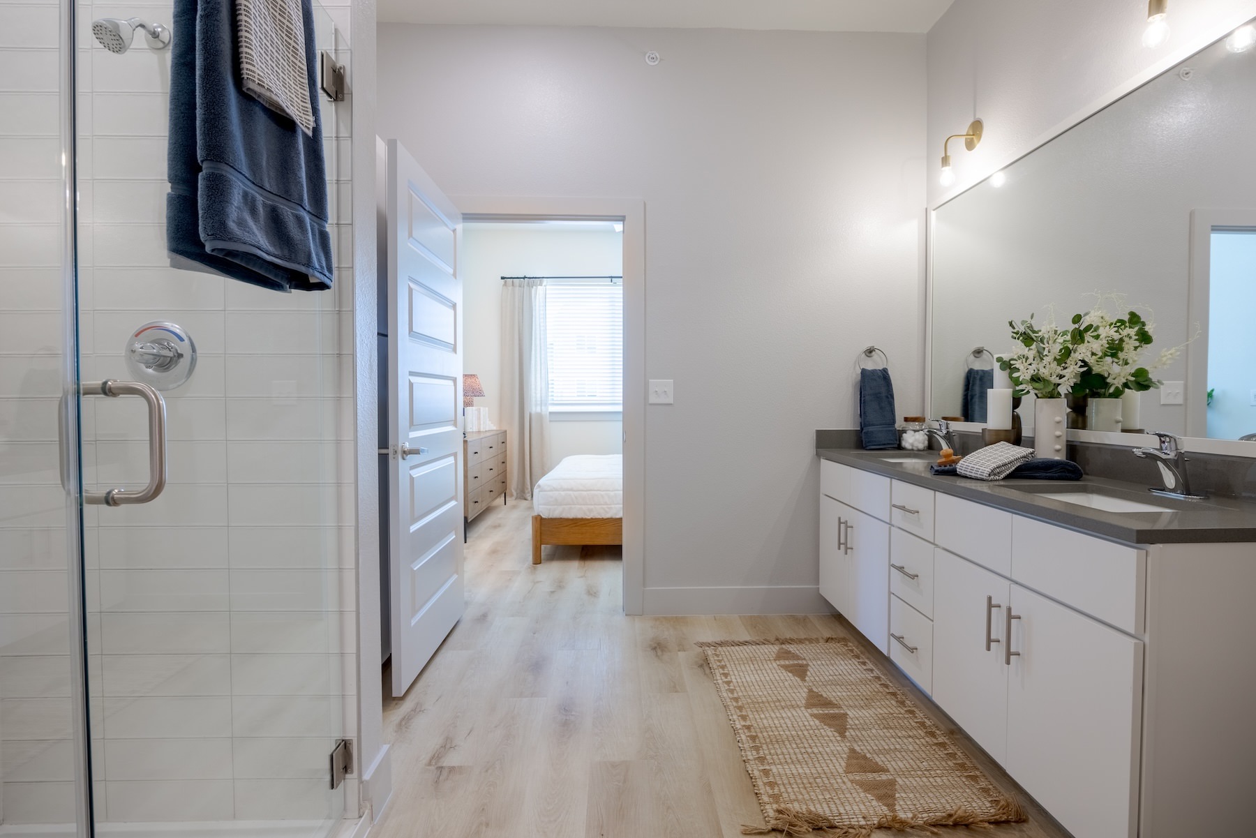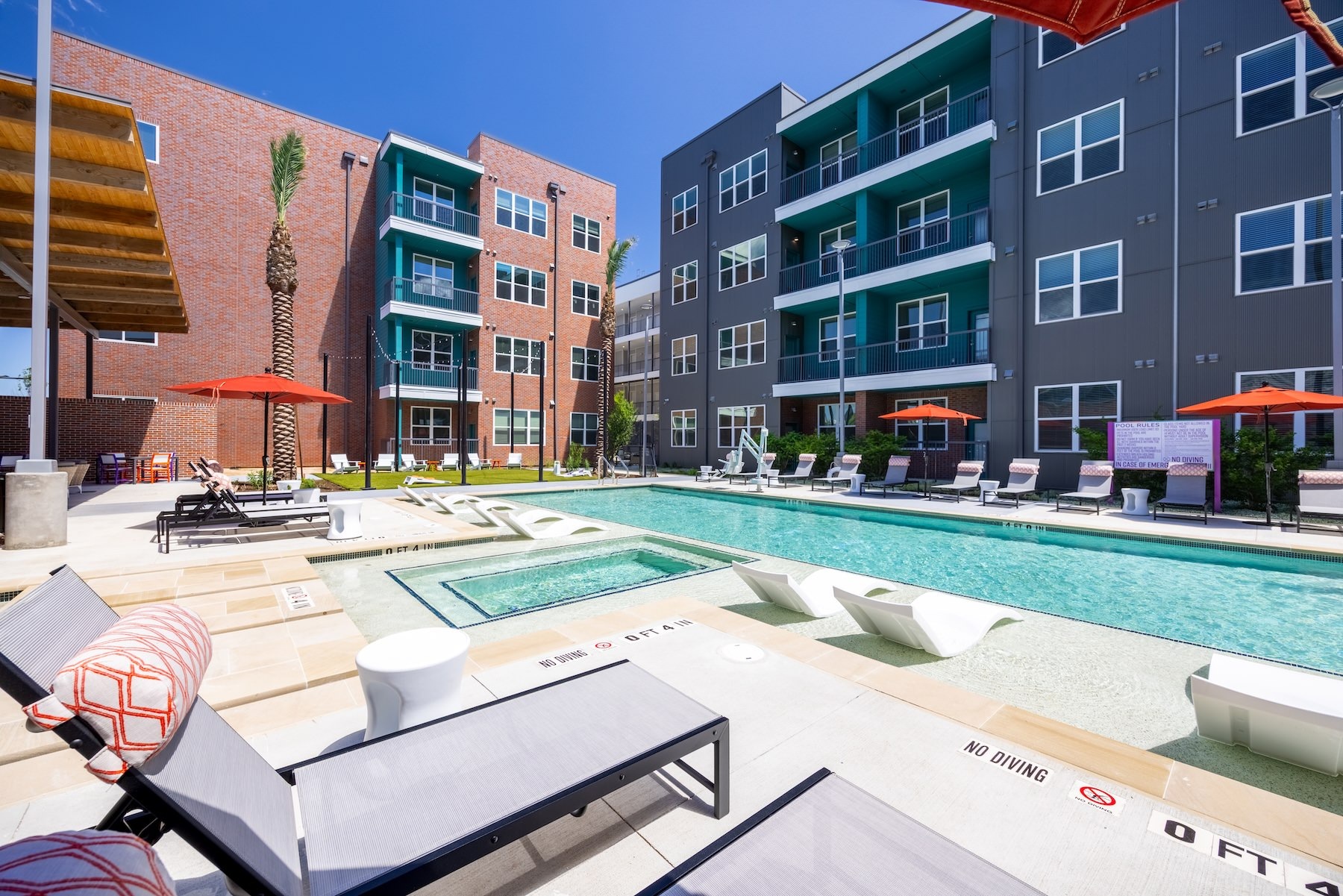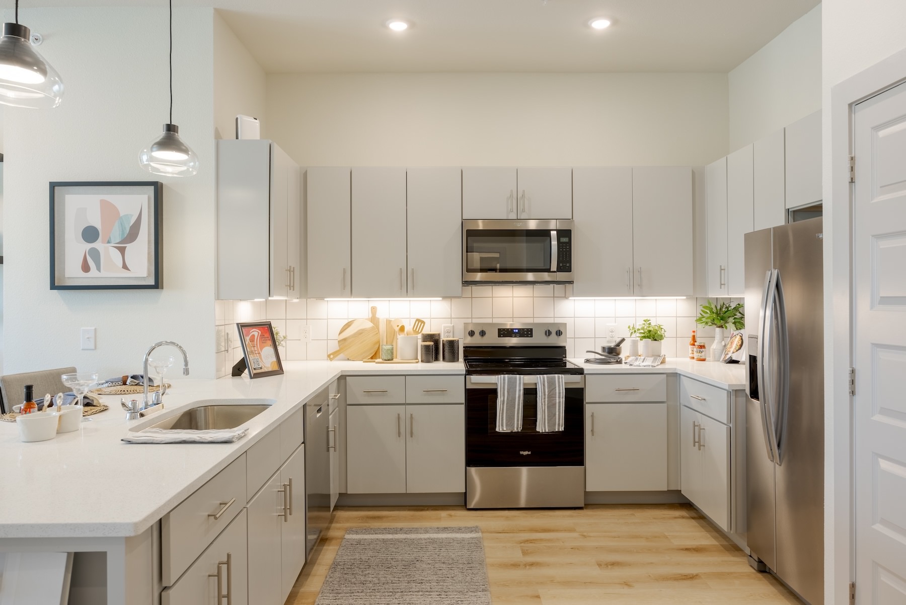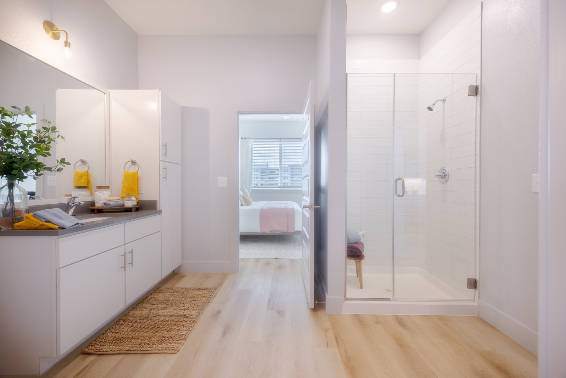 Co-working lounge and dining area at The Janis modern apartments in Austin, TX
